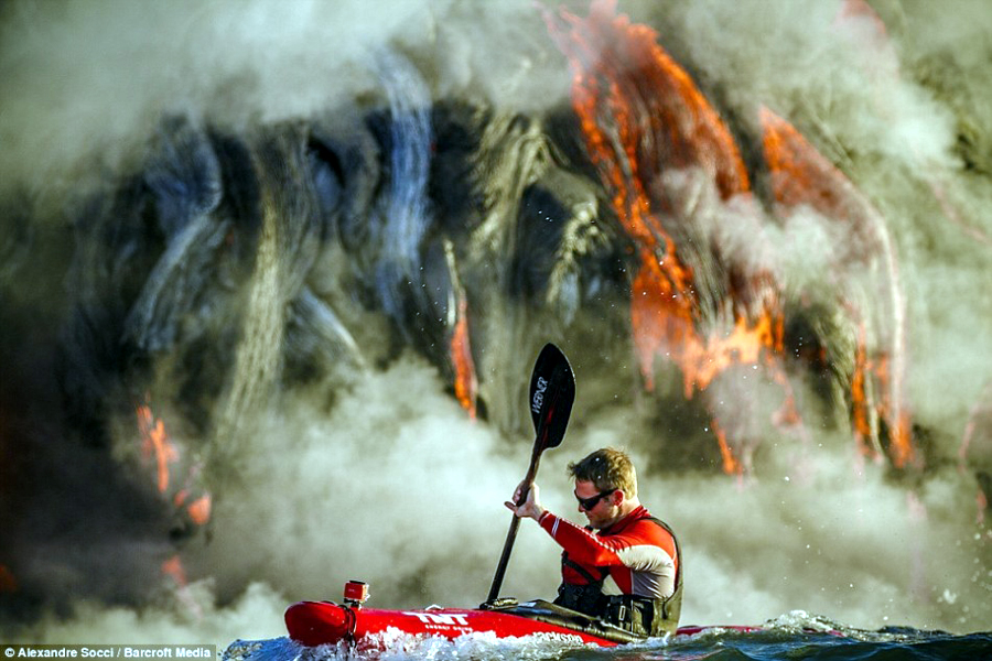 據英國《每日郵報》4月2日報道,夏威夷島上的一座火山日前突然噴發,為了一探究竟,三名勇士在滾燙的巖漿和濃濃的白煙中,不懼高溫和有毒氣體威脅,駕皮劃艇來到這座正在噴發的火山進行探險。