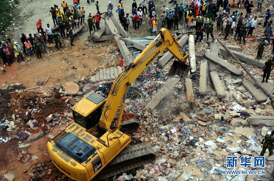 4月26日,在孟加拉國首都達卡郊區薩瓦爾鎮,救援人員在樓房倒塌現場忙碌。孟加拉國政府當日確認,薩瓦爾鎮24日發生的樓房倒塌遇難者已經增至304人。這是孟加拉國有史以來發生的最嚴重樓房倒塌事故。新華社發(沙里夫·伊斯蘭攝)