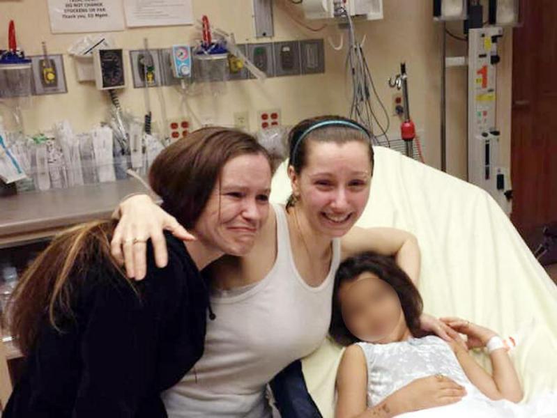 當(dāng)?shù)貢r間5月6日晚,美國俄亥俄州克利夫蘭市,3名遭綁架失蹤達(dá)10年之久的女子成功獲救。圖為其中一名獲救女子貝利(中)與姐姐重逢,旁邊的6歲女孩被疑為貝利在被囚禁期間所生。