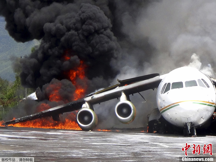 當地時間5月8日,印尼瓦梅納,一架英制BAe 146貨運飛機在卸載一個油桶時發生掉落事故,隨即發生大火。
