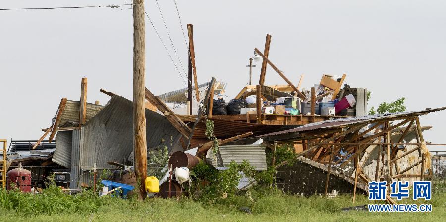 這是5月19日在美國俄克拉何馬州肖尼拍攝的遭龍卷風襲擊的房屋。當日,數起龍卷風襲擊了美國俄克拉何馬州。 新華社發(馬庫斯·迪保拉攝)