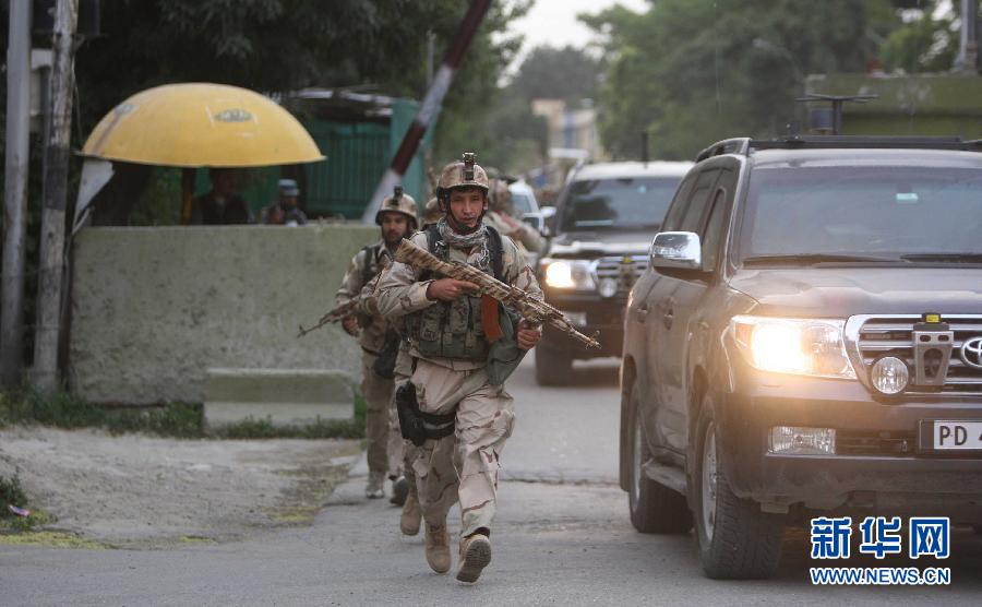 5月24日,在阿富汗首都喀布爾,安全人員前往現場。 當日,喀布爾發生連環爆炸,同時有武裝分子與警方發生槍戰,傷亡情況不詳。新華社發(艾哈邁德·馬蘇德攝)