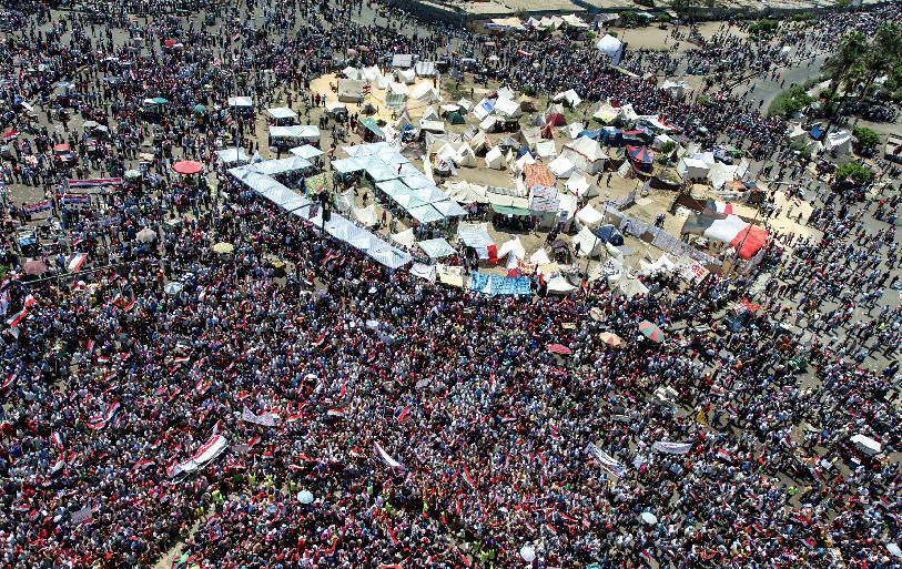 6月30日,在埃及開羅的解放廣場,反對派示威者舉行集會。 6月30日是埃及總統穆爾西宣誓就職一周年紀念日。當天,數百萬名埃及民眾在首都開羅以及亞歷山大、塞德港等主要城市舉行支持或反對穆爾西的大規模游行。新華社記者李木子攝