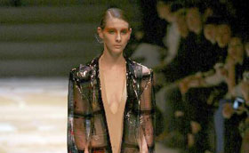 4月8日,模特在上海靜安800秀場舉行的Content(目錄)時(shí)裝發(fā)布會(huì)上走秀。當(dāng)日,2011上海國際服裝文化節(jié)上演了一場主題為Content(目錄)的時(shí)裝發(fā)布秀。在3月16日至4月16日期間舉行的2011上海國際服裝文化節(jié)暨上海時(shí)裝周2011秋/冬作品發(fā)布,以“創(chuàng)新·融合·時(shí)尚上!睘橹黝},掀起了一股時(shí)尚潮流的旋風(fēng)。新華社發(fā)(莊毅 攝)