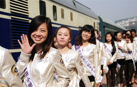 4月24日,來自巴西的茹利亞娜(左)戴上桂冠。當日,2011世界超級模特大賽全球總決賽暨頒獎盛典在北京舉行。比賽分活力裝、泳裝、時裝和晚裝四個環(huán)節(jié)。 新華社記者 李穎 攝