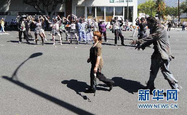 4月30日,人們在美國洛杉磯帕薩迪納市參加“搞怪”游行。當天,洛杉磯帕薩迪納市上演一場名為“搞怪”的游行,當地居民紛紛發揮想象力,裝扮成各種各樣的怪模樣參加游行。 新華社記者戚恒攝