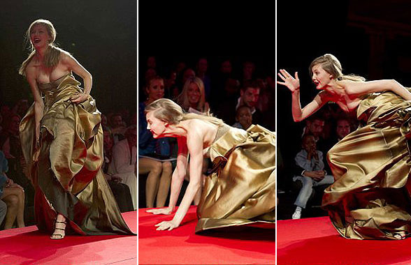 “恨天高”惹禍!名模T臺摔倒瞬間 2011-05-22 08:55