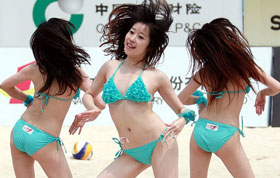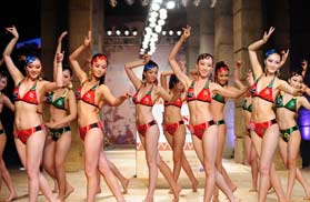 6月9日晚,第36屆國際比基尼小姐大賽北京賽區總決賽在北京瑪雅島酒店舉行,參賽佳麗在經過了最佳才藝專項賽、最佳身材專項賽、最佳DIY專項賽的三場比賽后進行在決賽競爭,協辦方浩沙設計的新款泳裝同臺競技,經角逐參賽佳麗鄒靖雯獲得冠軍、徐嘉琦獲得亞軍、李京獲得季軍。中新社發 錢興強 攝