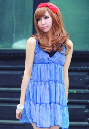 清新的藍色充滿了海軍風的味道,烘托出少女的清純氣質