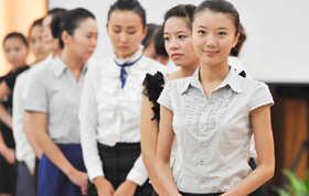 2011年7月2日,某著名泳裝品牌在北京新光天地以一場(chǎng)唯美的泳裝秀拉開(kāi)了新一季新品發(fā)布的序幕,為顧客營(yíng)造了清涼氛圍。圖為模特甜美展示新款泳裝。中新網(wǎng)記者 楊磊 攝