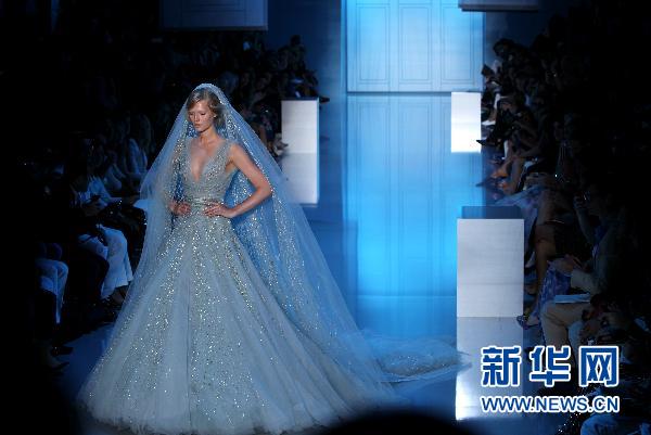 7月6日,模特在法國巴黎高級定制時裝周上展示黎巴嫩設(shè)計師埃利·薩布的2011/2012秋冬新品。 新華社記者高靜