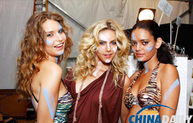 臺上的光鮮靚麗受人矚目,但臺下付出的辛苦往往不為人知。每天早上八點半趕到場館的何璧男需要一個半小時甚至更長的時間化妝、造型,“有時候化妝師忙不過來還需要自己動手”。到了上臺的時候一站就是二十分鐘,腿直了、腰酸了也不能有大幅度活動,只能換個姿勢繼續保持微笑。汽博會期間,廠商每天要安排至少四場走秀,補妝成了除午休之外少有的休息時間,她也多是趁著這個機會才能有所放松。她對記者說自己工作不辛苦,和其他職業模特有些許不同的是何璧男把獲得專業實踐經驗放在了第一位,所以用她自己的話來說“干這個沒負擔,挺快樂的”。