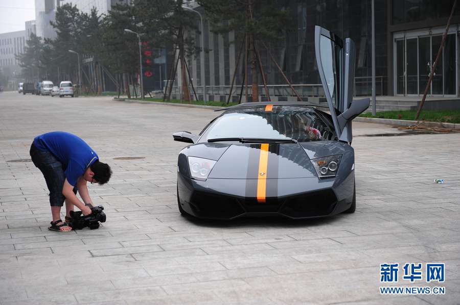2011年7月22日,北京街頭一輛超級(jí)跑車展開(kāi)的車門讓人聯(lián)想到最近上映的《變形金剛3》。新華網(wǎng) 李欣 攝