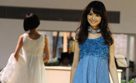 2011國際城市比基尼小姐大賽全球總決賽冠軍意大利選手瑪麗娜(前)(7月23日攝)。當日,2011國際城市比基尼小姐大賽全球總決賽在哈爾濱市進行,意大利選手瑪麗娜、中國選手馬曉倩、荷蘭選手安娜分別奪得冠、亞、季軍,為期七天的比賽吸引來自世界50個國家和地區的60余名佳麗參加。新華社記者 王松 攝