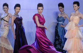 9月19日,在西班牙馬德里時裝周上,模特在展示西班牙時裝品牌TCN的2012春夏時裝作品。 2012馬德里春夏時裝周于9月16日至20日舉行。 新華社記者陳海通攝