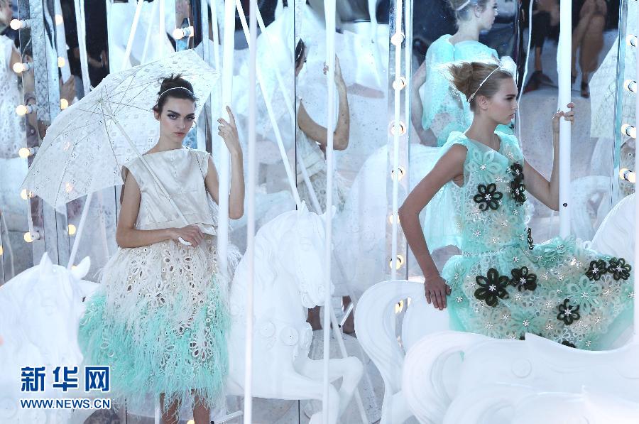 10月5日,在法國巴黎時裝周上,模特展示路易威登2012年春夏新品。新華社記者 高靜 攝