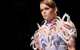 10月14日,在愛沙尼亞首都塔林,業余模特在T臺上展示秋裝。為期兩天的秋裝展示會當天在塔林開幕。 新華社發(維克托攝)