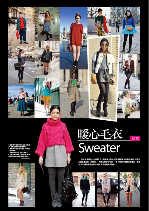 毛衣從未離開過時尚圈,它一直是潮人們的大愛,隨著復古風潮的席卷,毛衣的大熱也由此再一次到來。一件肥大的粗針毛衣,一條個性的打底褲任意搭配一雙鞋子,可以瞬間爆發(fā)出你的氣場,時尚就是如此簡單!