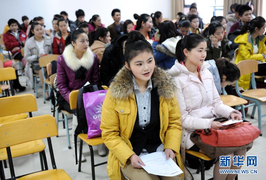 當日,中國傳媒大學南廣學院2012年藝術類招生現場報名考試開始舉行,學校各藝術類本科專業計劃招生1840人。在南京的學校本部考點,來自各省的上萬名考生和家長擠滿報名處。隨著近日南京部分高校藝術類招生校考的現場報名考試拉開帷幕,數以萬計的考生帶著藝術夢想從各地前來趕考,相關高校的校園隨處可見考生排成的長隊和擁擠的人群。新華社記者 孫參 攝