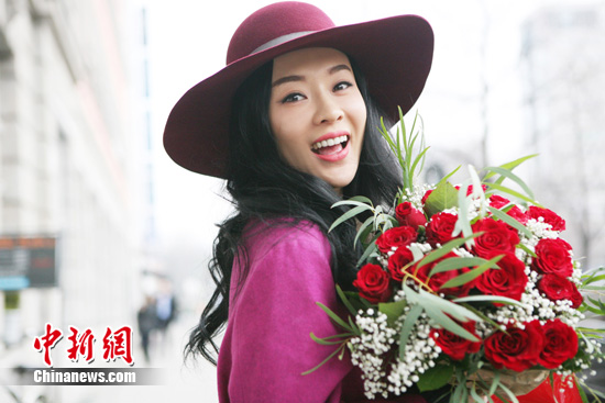 霍思燕柏林街拍 玫瑰映紅唇感受情人節