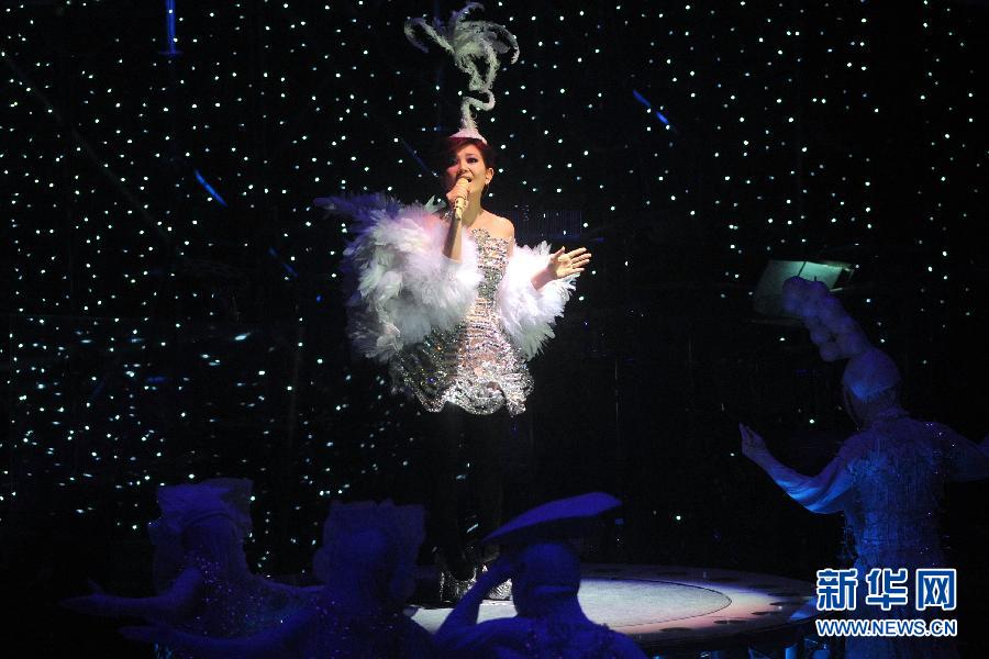 2月25日,梁靜茹在臺上演唱。當日,歌手梁靜茹在澳門舉辦“愛的那一頁”個人演唱會。 新華社記者 張金加 攝