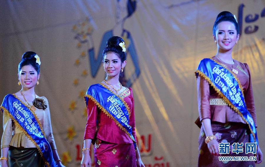 3月15日,在老撾首都萬象塔鑾廣場,身著老撾傳統服裝的選手參加“宋干小姐”評選。“宋干節”是老撾每年最重要的傳統節日,又稱“潑水節”。在節日到來前夕,老撾首都萬象市舉行“宋干小姐”評選,最終將選出7位“宋干小姐”。“宋干小姐”除了象征傳統神話中神王的7個女兒參加各種活動外,還將作為婦女的代表推廣老撾傳統文化。新華社發(劉艾倫攝)