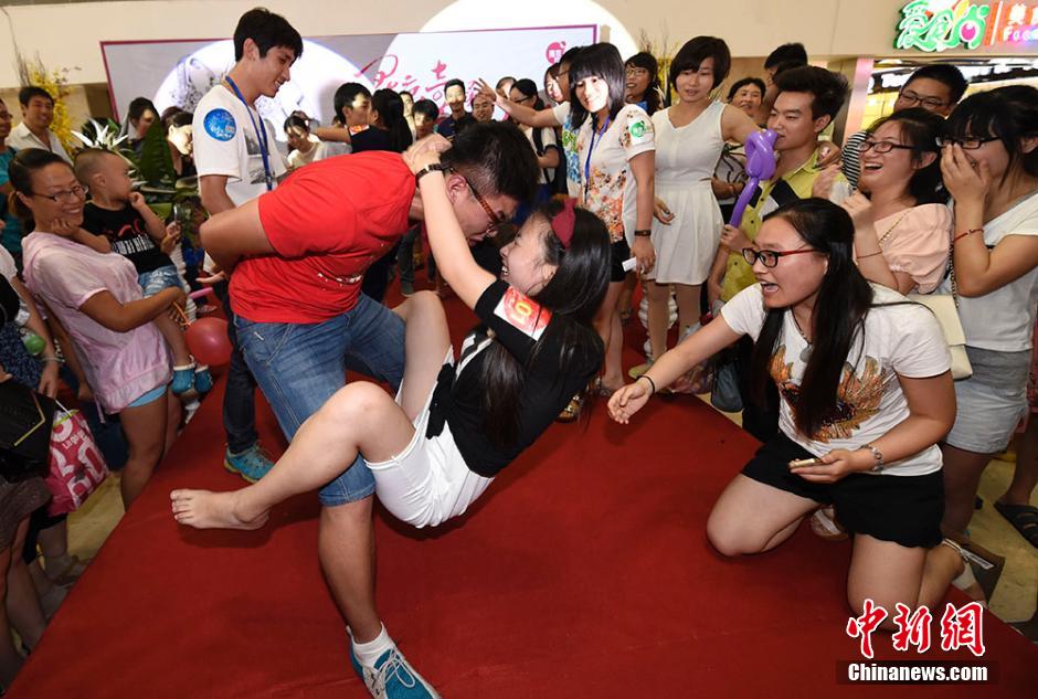 單腿獨(dú)立式、騎跨式、肩背式……8月2日晚,一場(chǎng)火熱的接吻大賽在南京八佰伴舉行,參賽情侶們通過(guò)多輪姿勢(shì)“技巧”的比拼爭(zhēng)奪鉆戒大獎(jiǎng),同時(shí)也用KISS的方式大膽表達(dá)對(duì)愛(ài)人的真摯情義。寒單 攝