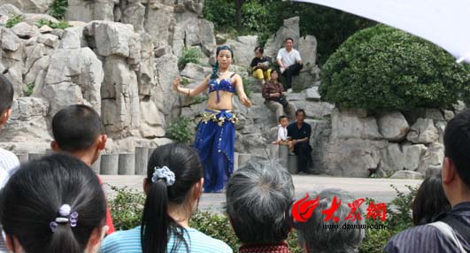 大眾網濟南5月3日訊(記者 余梁) 今天是“五一”假期的最后一天,大明湖風景區內游人如織,游客不僅可以乘船欣賞湖光山色,還可以觀賞精彩的肚皮舞、拉丁舞、踢踏舞等各類時尚舞蹈表演,參與攀巖等各類健身活動。