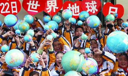 4月21日,棗莊市光明路小學為了從小培養孩子們保護地球的意識,開展“擎起心中的地球,迎接世界地球日”活動,每名學生雙手都舉起一個地球儀歡聚在校園內,迎接4月22日“世界地球日”的到來。趙慧 吉喆 金殿居攝