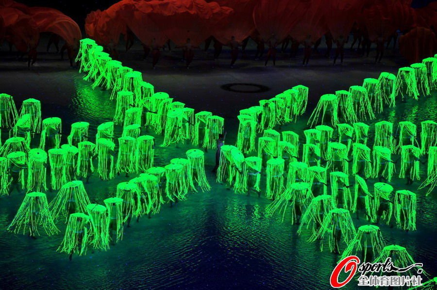 2010年11月10日,2010年廣州亞運會開幕式帶妝合排,圖為精彩瞬間。