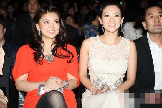 章子怡蕾絲白裙顯豐滿 與李湘看秀熱聊 2011-03-26 09:28