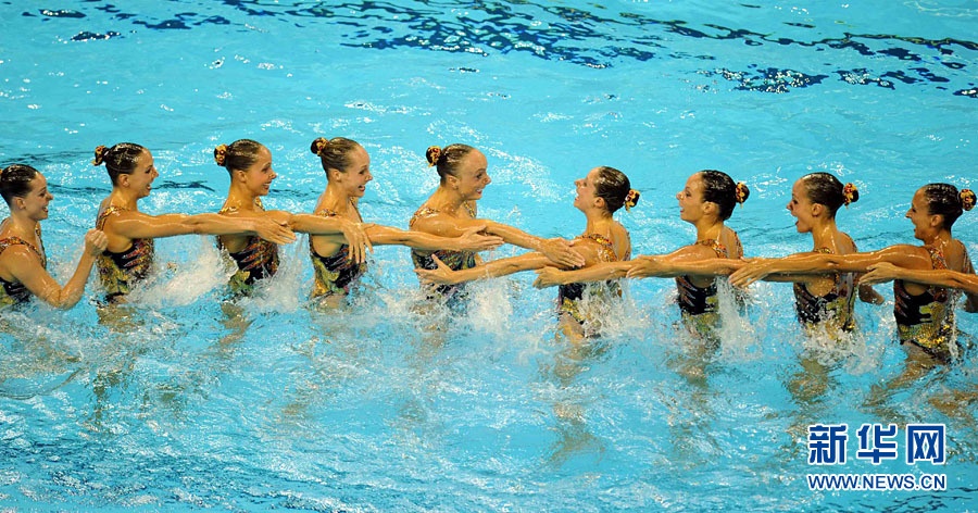 花樣游泳——鵲橋會 7月21日,加拿大選手在比賽中。當日,在第14屆國際泳聯世錦賽花樣游泳自由組合決賽中,加拿大隊以96.150分的成績獲得季軍。新華社記者楊宗友攝