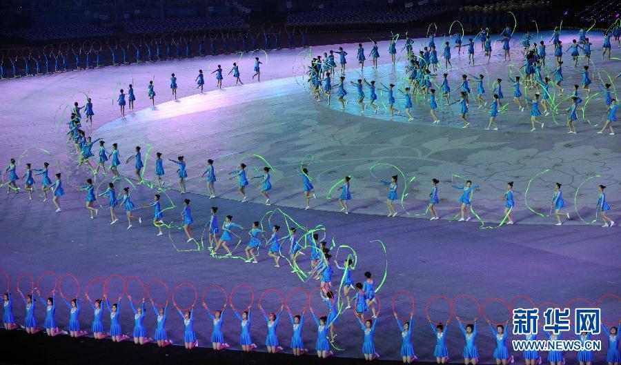10月16日,第七屆全國城市運動會開幕式在江西省南昌國際體育中心舉行。這是開幕式前的熱場表演《絢麗的希望》。新華社記者李健攝