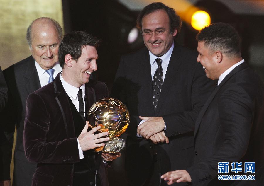 新華網(wǎng)蘇黎世1月9日體育專(zhuān)電(記者馬邦杰)巴塞羅那球星梅西9日力壓克·羅納爾多和隊(duì)友哈維,再次榮膺國(guó)際足聯(lián)年度金球獎(jiǎng)。這是24歲的梅西連續(xù)第二次捧走金球獎(jiǎng)。