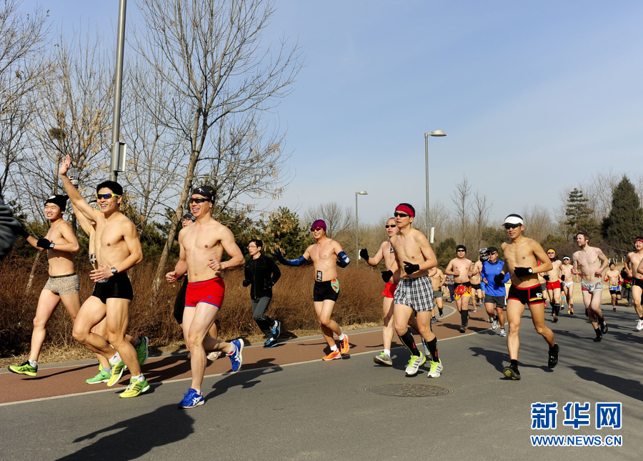 2012年2月26日,上百名跑步愛好者齊聚奧林匹克森林公園參加首屆光豬跑,并有可能打破內衣跑吉尼斯世界紀錄。新華網 李欣 攝