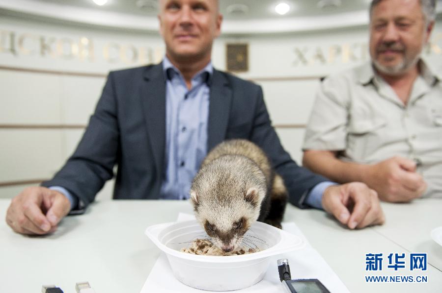5月28日,在基輔舉行的新聞發布會上,名叫弗雷德的寵物鼬亮相。據當地媒體報道,弗雷德將在歐洲杯足球賽期間預測賽果。 新華社/路透