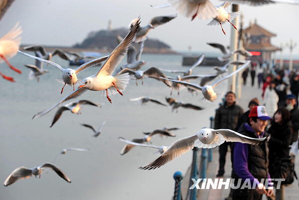 每到冬季,大批海鷗從西伯利亞、中國東北等地飛臨青島越冬避寒。從上世紀90年代初開始,青島市民堅持開展“挽留海鷗”公益行動。人們紛紛助資捐款,給海鷗提供越冬棲息的良好環(huán)境。