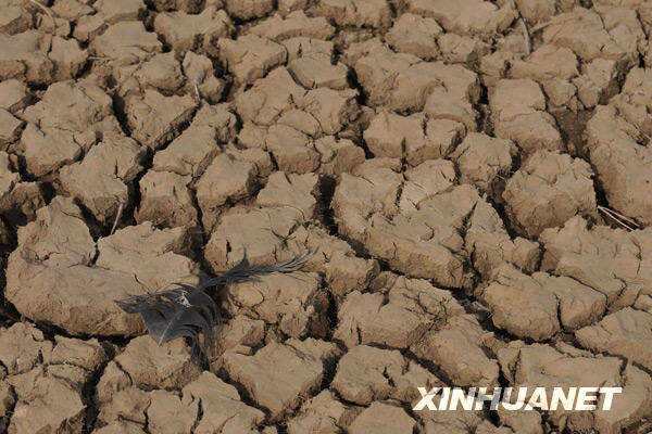 貴州草海保護(hù)區(qū)內(nèi),一些濕地已經(jīng)干涸,因干旱草海保護(hù)區(qū)黑頸鶴提前遷徙(2010年3月14日攝)。新華社發(fā)
