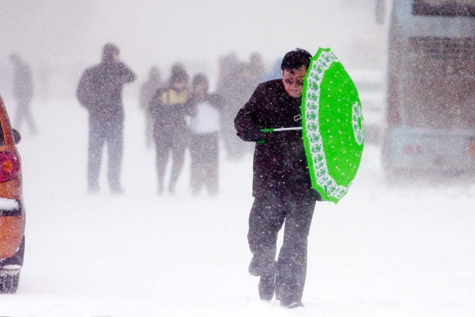 4月13日,哈爾濱,市民在風雪中艱難行走。 從12日中午開始,哈爾濱突降大雪。黑龍江省12日發(fā)布的暴雪藍色預(yù)警和道路結(jié)冰黃色預(yù)警稱,哈爾濱、佳木斯等地局部有大到暴雪。目前風雪仍在持續(xù)。