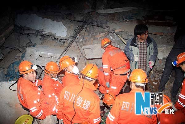 4月14日夜,四川救援隊在玉樹縣縣城紅衛路一處地震廢墟展開救援。當日19時44分,四川救援隊抵達青海玉樹機場后,隨即趕赴救援現場,連夜投入救援工作。新華社記者 任曉剛攝