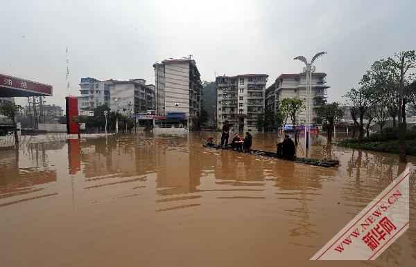 當天,受幾天來的連降大到暴雨影響,廣西桂林市漓江突發洪水。12時24分時,漓江洪峰最高水位達147.14米,超過警戒水位1.44米,流量為3390立方米/秒。受此影響,漓江游覽航線今年再次全線封航。新華社記者 陳瑞華 攝