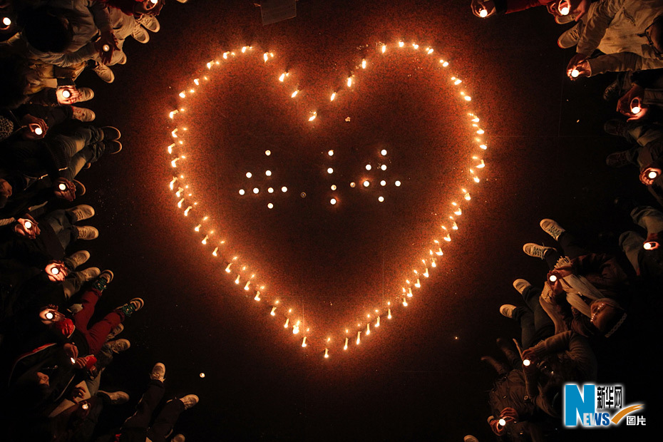 4月20日晚,江蘇省南通大學(xué)學(xué)生在“玉樹,我們一直在”祈福活動(dòng)中點(diǎn)亮蠟燭,哀悼逝者。 新華社發(fā)(許叢軍 攝)