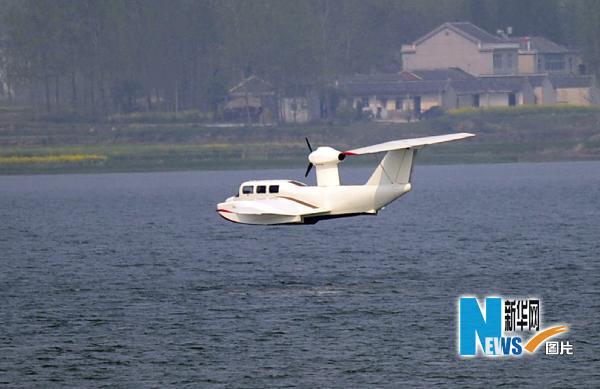 當(dāng)日,由江蘇恒川集團研發(fā)的新一代地效翼船(俗稱“水上飛機”)“天使鳥”號在南京金牛湖兩起兩降試飛成功。該型地效翼船寬10.7米,長12.6米,高3.5米,是中國企業(yè)生產(chǎn)出的完全具有自主知識產(chǎn)權(quán)的地效翼船。地效翼船是一種介于飛機和船舶之間的新型高速運載工具,可以在高速公路或水面上起飛、降落。新華社發(fā)(吳俊 攝)