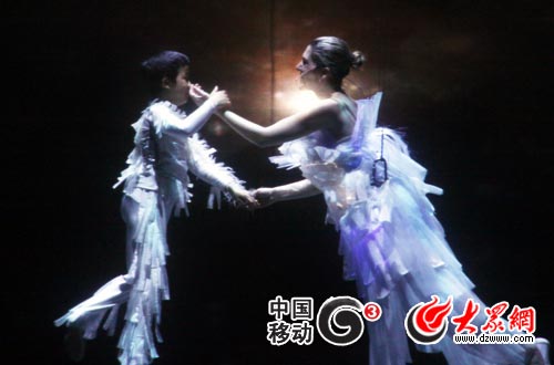 大眾網-移動G3上海5月4日訊(特派記者 李冉 吳哲)一個女孩在上海遇見天使,于是上演了一段穿越時空、看見未來的非凡旅程。記者在世博園后灘廣場觀看世博主題演繹秀——城市之窗。這部室內大型奇景多媒體高空特技故事劇,由兩岸三地、歐、美頂尖藝術家全力創作,在世博園區惟一的6300平米專屬大舞臺上演。溫情的故事、全球唯一超大型多重立體旋轉魔方舞臺,以及演員們動感的表演,生動演繹了城市的生命力和人與人之間的愛,臺灣歌星張韶涵在劇尾現場演唱了為世博特別創作的《隱形的翅膀》世博版,將劇情推向高潮。