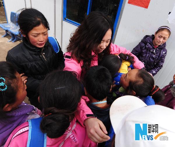 5月8日,將要離開玉樹的王凌燕與孤兒學(xué)校的孩子們依依惜別,她對相擁在一起的孩子們說:“見到你們,我知道我還有很多事情要做,我一個人的力量是有限的,這次回北京一定要為你們籌集更多東西,我一定會帶著更多人的愛回來看你們!” 王凌燕是中國社工協(xié)會兒童社會救助工作委員會助醫(yī)辦公室主任,今年34歲的她也是一個9歲孩子的媽媽。4月14日玉樹地震發(fā)生后,她和她的團(tuán)隊(duì)開始緊張工作,針對地震造成的病殘兒童制定救助方案,多方聯(lián)系企業(yè)捐助和醫(yī)院,準(zhǔn)備在震后為青海地區(qū)的孤殘兒童提供長期的醫(yī)療救助。 5月5日,王凌燕以一個普通母親的身份,來到玉樹地震的大后方——西寧市進(jìn)行災(zāi)區(qū)兒童傷情摸底。她和參與地震救援的青海志愿者一起走訪收留了玉樹病殘孩子的青海省婦女兒童醫(yī)院、青海紅十字醫(yī)院,看望病兒、了解病情,并通過省民政廳、青海社工協(xié)會詳細(xì)了解災(zāi)區(qū)病殘兒救助的情況。“看到那些因地震早產(chǎn)的嬰兒、那些患有先天性心臟病的孤兒,當(dāng)你看著他們充滿渴望的雙眼、聽到他們的啼哭,你能感到他們好像什么事情都明白,他們需要幫助,需要母親的愛,我必須去幫他們……” 5月7日,王凌燕主動請纓,搭乘震后首次恢復(fù)運(yùn)營的航班前往玉樹,走訪了解放軍309醫(yī)院玉樹野戰(zhàn)醫(yī)院、玉樹孤兒學(xué)校,見到了在地震后出生的孩子、從廢墟里救出來的孩子…… 在玉樹孤兒學(xué)校,校長邀請她給孩子們上課,她用母親般的微笑和言語贏得了孤兒學(xué)生們的愛戴,學(xué)生們稱她“天使媽媽”“美女媽媽”“陽光媽媽”。新華社記者 楊光 攝