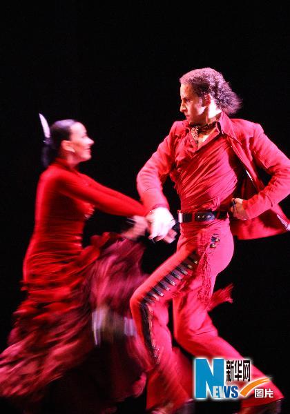 5月13日,西班牙國家芭蕾舞團演員在表演舞蹈。當晚,西班牙國家芭蕾舞團在上海世博中心舉行舞蹈表演,演員們激情、華麗的表演帶領觀眾體驗西班牙風情。 新華社記者王迎攝