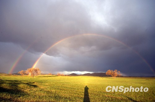 內蒙古草原出現罕見“雙彩虹”奇觀