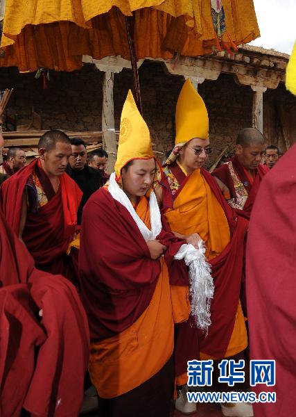6月6日,第七世熱振·洛追嘉措赤烈倫珠活佛(左)迎接中國佛教協會副會長第十一世班禪額爾德尼·確吉杰布。當天,中國佛教協會副會長第十一世班禪額爾德尼·確吉杰布來到距離拉薩240公里的熱振寺進行朝拜,并與第七世熱振·洛追嘉措赤烈倫珠活佛會面。據介紹,熱振寺創建于1057年,距今有900多年的歷史,是一座著名的藏傳佛教噶當派寺院。目前寺內有100多名僧人,熱振活佛于2000年坐床。新華社記者 覺果 攝