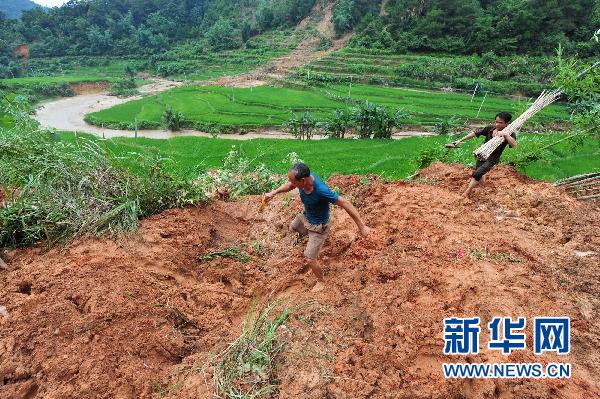 6月16日,廣西蒼梧縣沙頭鎮道路被泥石掩埋,村民艱難前行。據廣西壯族自治區民政廳16日17時統計,連日的強降雨已造成廣西7市24縣(區)受災,受災人口合計63萬人,累計緊急轉移安置9.82萬人;農作物受災面積33.99千公頃,其中成災15.05千公頃,絕收1.5千公頃;因災倒房2023間。新華社記者黃孝邦攝