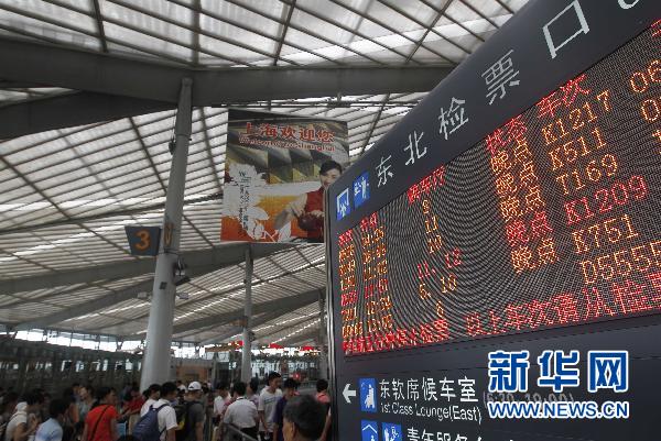 6月20日,進(jìn)站旅客從上海南站的電子公告牌旁經(jīng)過。當(dāng)日,受南方暴雨影響,從上海南站發(fā)往福州、南昌、貴陽等方向的11趟列車停運(yùn),大量列車晚點(diǎn),近8000名旅客需辦理退票手續(xù),2萬多名旅客出行受阻。為及時(shí)疏導(dǎo)客流,上海長途汽車客運(yùn)南站積極組織運(yùn)力,加開班次運(yùn)送鐵路旅客。新華社記者 裴鑫 攝